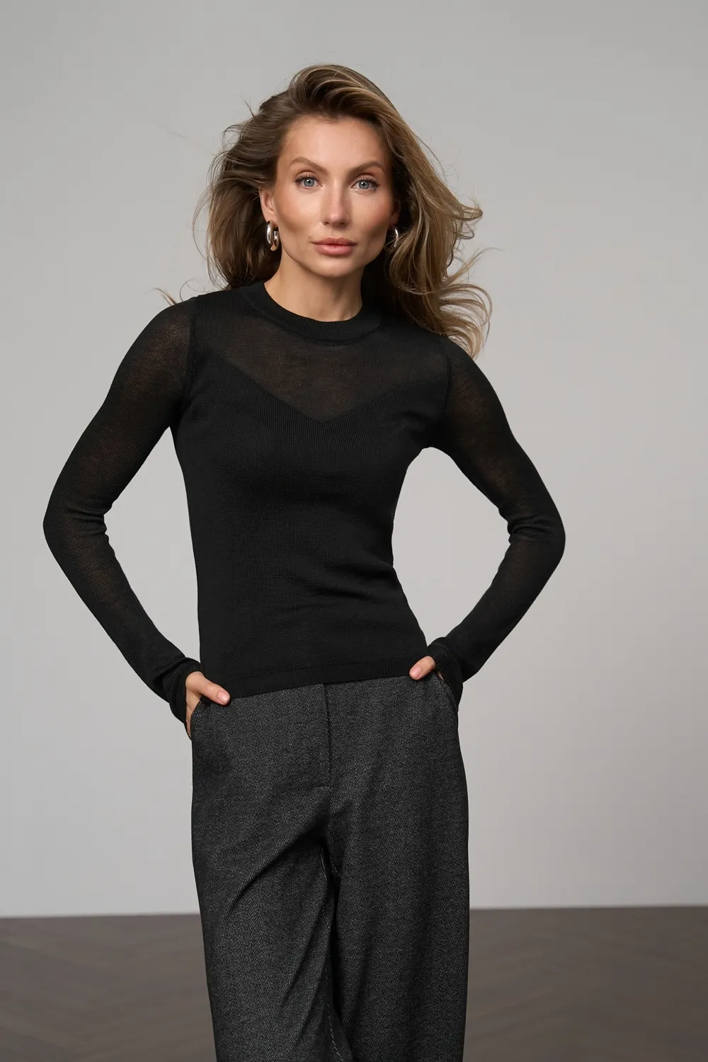 Ніжний лонгслів прямого силуету, виконаний із супертонкої пряжі люксової якості з віскозою та бавовною. Має приємну напівпрозору текстуру та гладке переплетення, що красиво лягає по фігурі.